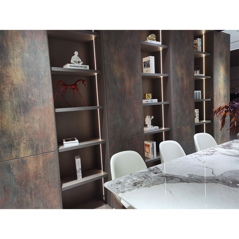 சாப்பாட்டு அறை, டீ அல்லது காபி பிரேக் ரூம் மற்றும் படிக்கும் அறைக்கு இந்த அலமாரியை சினோவா வடிவமைத்துள்ளார். இந்த தனிப்பயனாக்கப்பட்ட சாப்பாட்டு அறை இடம் துருப்பிடித்த தொழில்துறை பெட்டிகளால் பொதுவாக பயன்படுத்தப்படும் பொருட்களை சேமிக்க அல்லது கைவினைப்பொருட்கள் மற்றும் படச்சட்டங்களை காட்சிப்படுத்த பெரிய இடத்தை வழங்க முடியும். விண்டேஜ் தோற்றம் உன்னதமானது மற்றும் கடினமானது, இது அறை உரிமையாளரின் நேர்த்தியான குணத்தையும் கலாச்சார அர்த்தத்தையும் காட்டுகிறது.