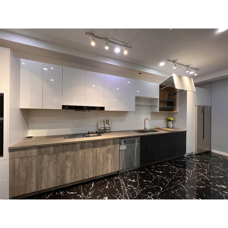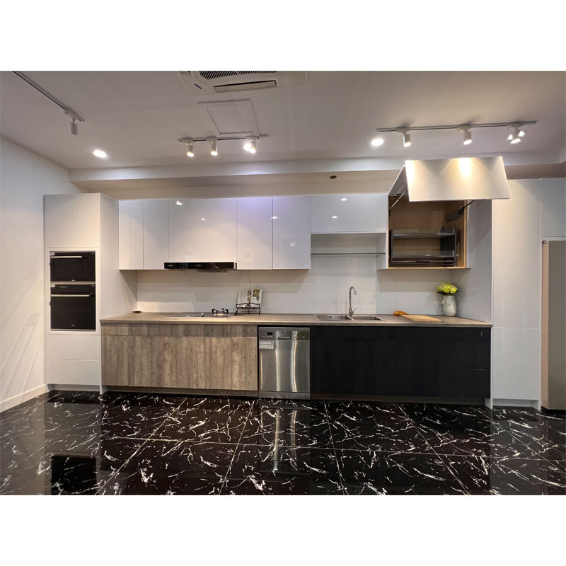 சாம்பல் மற்றும் வெள்ளை வண்ண கலவை வகை மிகவும் பிரபலமாக உள்ளது. நவீன சமையலறைகளுக்கான சாம்பல் pvc பெட்டிகளின் கதவு பேனல் நிறம் மற்றும் பெஞ்ச்டாப் நிறம் ஆகியவை விருப்பமானவை. SINOAH இன் தனிப்பயன் கேபினெட்டுகள் செலவு குறைந்தவை, நீடித்தவை மற்றும் அரிப்பு மற்றும் ஈரப்பதத்தை எதிர்க்கும்.