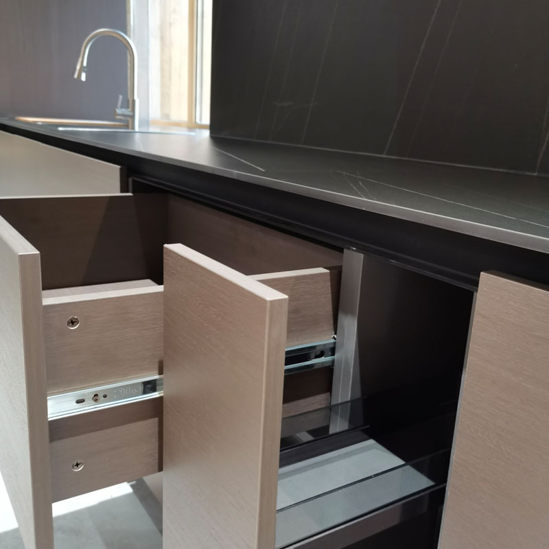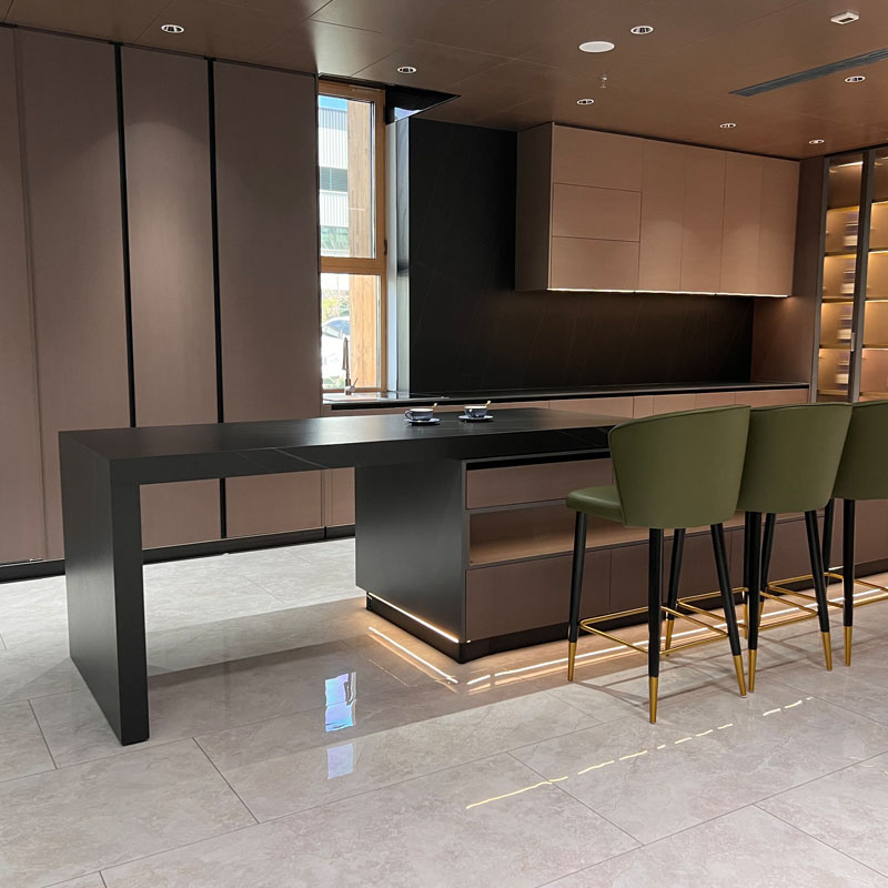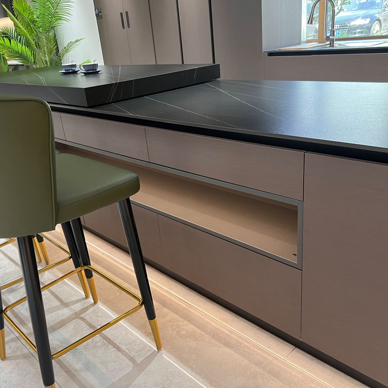 | விளக்கம் | கண்ணாடி சமையலறை அலமாரிகளுடன் கூடிய L வடிவ சொகுசு சமையலறை அலமாரிகள் |