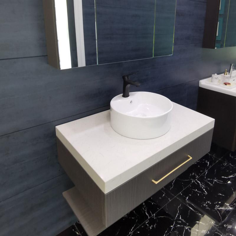 மிதக்கும் வேனிட்டி சிறியது மற்றும் மென்மையானது, பெரியவற்றை விட அவற்றை பராமரிக்கவும் சுத்தம் செய்யவும் எளிதாக்குகிறது. மற்றும் மெலமைன் சிறிய பாத்ரூம் வேனிட்டி மடுவுடன் கூடிய குளியலறை இடத்தை பொருத்துவதற்கு மிகவும் நெகிழ்வானது.