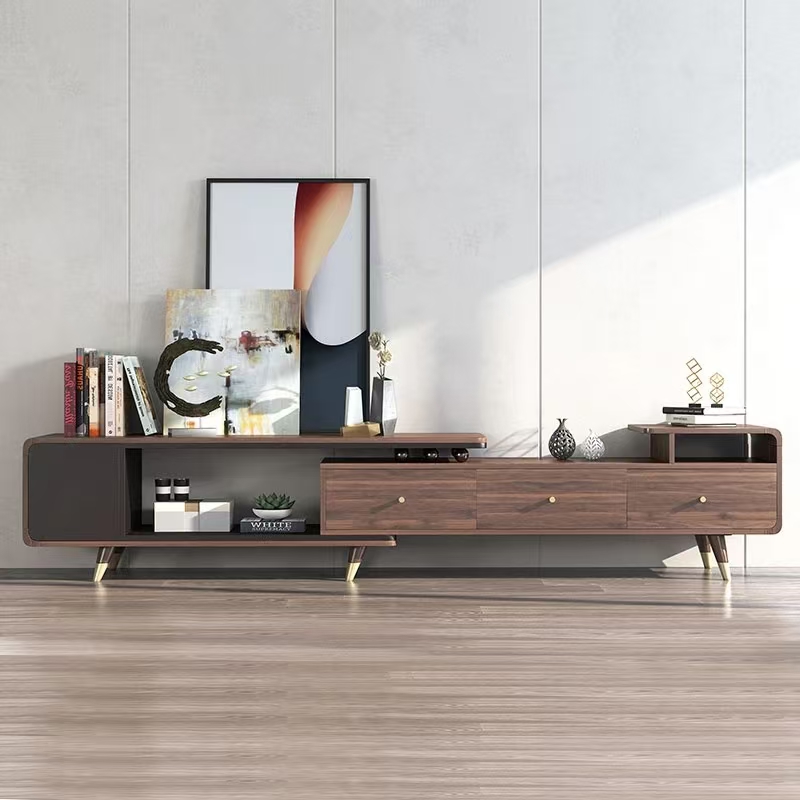 தரையில் நிற்கும் தொலைக்காட்சி அமைச்சரவை மிகவும் பொதுவான மற்றும் பல்துறை பாணி. இது எளிமையானது மற்றும் விண்வெளி சேமிப்பு, பொருந்தக்கூடியது, மற்றும் விண்வெளியில் அடக்குமுறை உணர்வைத் தவிர்க்கலாம். போதிய ஆழம், குறுகிய அகலங்கள் மற்றும் ஏற்கனவே உள்ள பின்னணி சுவர்களைக் கொண்ட தளவமைப்புகளுக்கு இது ஏற்றது.