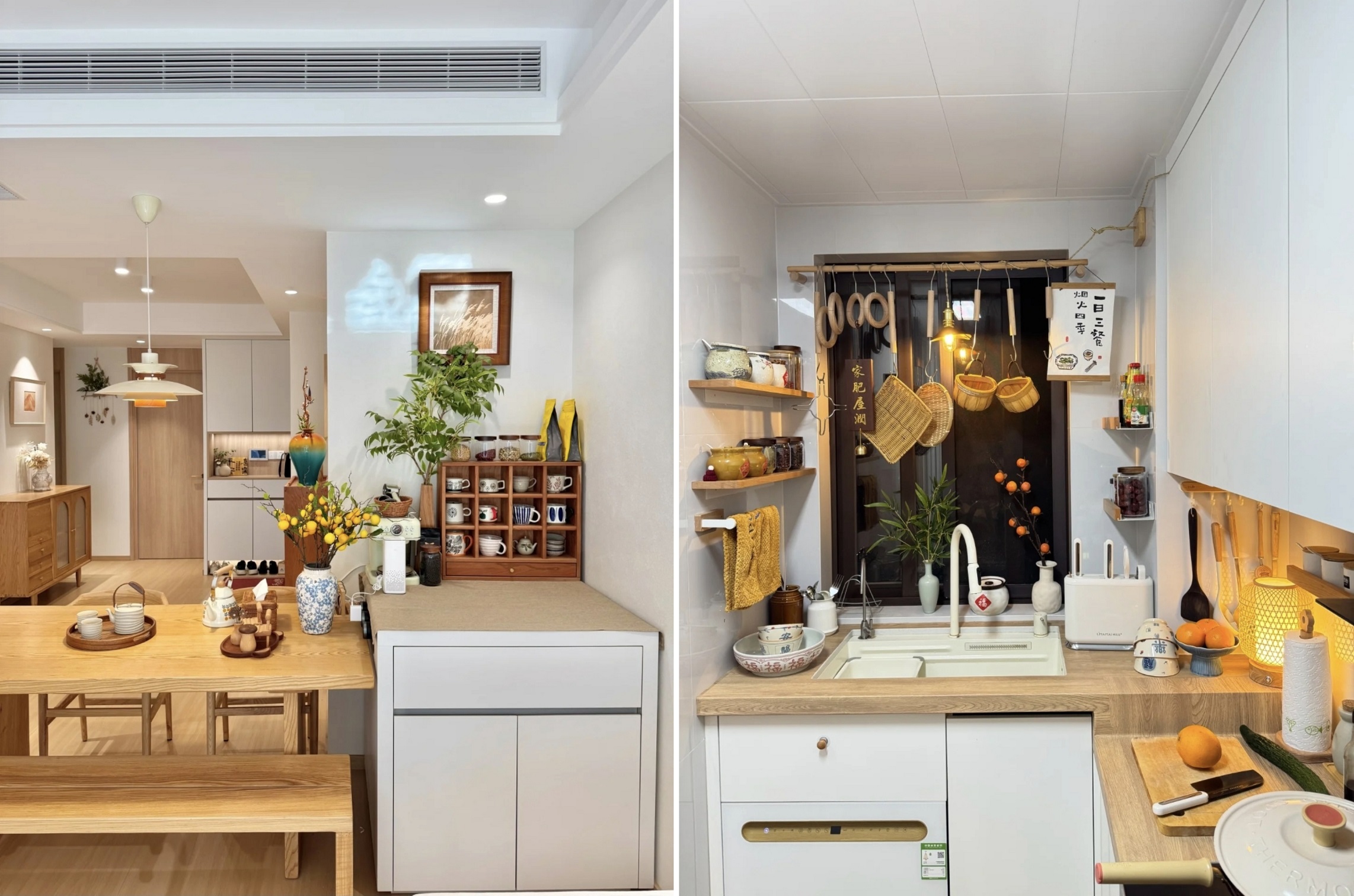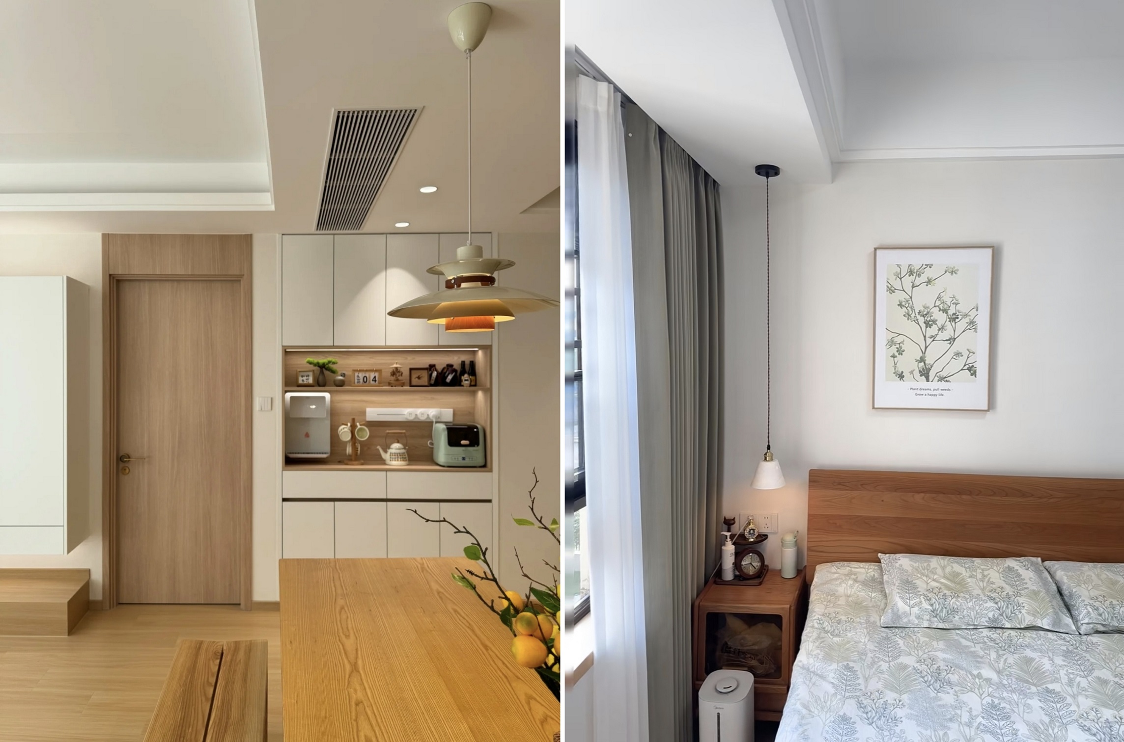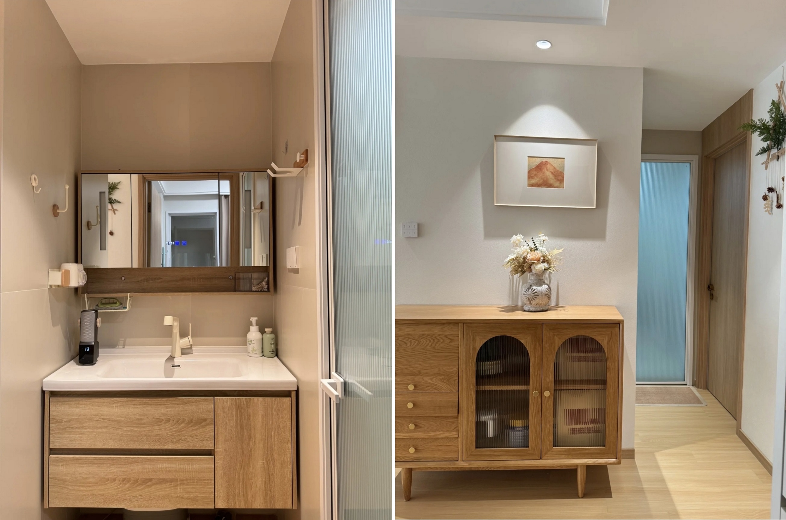 4. அமைச்சரவை கதவுகள் சுவர் நிறத்திற்கு அருகில் உள்ளன, மற்றும் அமைச்சரவை உடல் மர தானிய ஓடுகளுக்கு அருகில் உள்ளது, இதனால் காட்சி விளைவு மிகவும் ஒன்றிணைந்தது.
